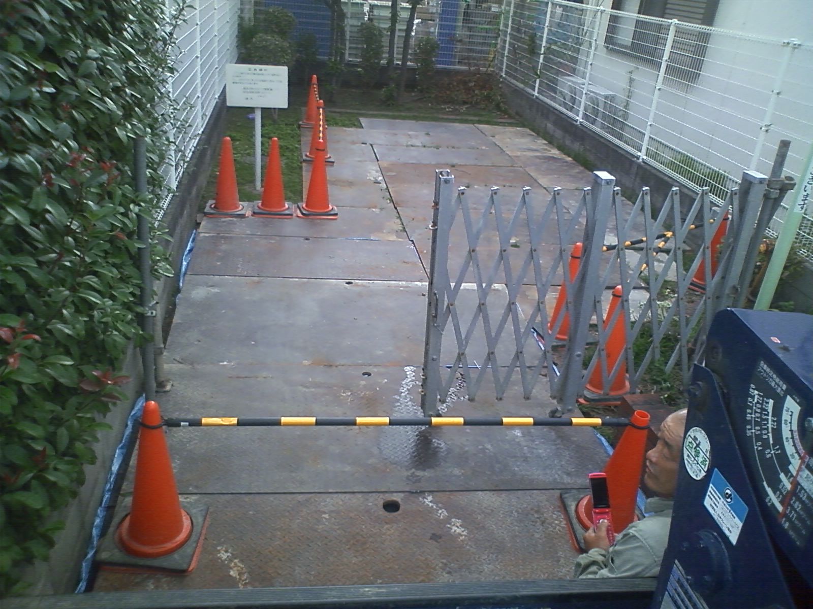 仮囲い・仮設階段・敷鉄板等による通路養生など
